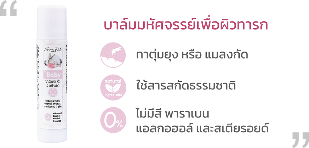 ผลิตภัณฑ์ มามะทัตจิ เบบี้บาล์ม บาล์มทาตุ่มยุงกัด พัฒนาขึ้นเพื่อผิวบอบบางของลูกน้อยโดยเฉพาะ